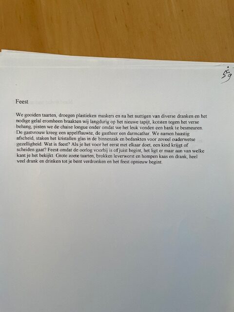 pomgedichten.nl heeft het exclusieve recht gekregen om 65 teksten van Miriam Al tweewekelijks op de woensdag te publiceren – dat gaan we doen! de teksten zijn door haar helaas overleden vriend Merik van der Torren nog net voor zijn dood uitgetypt en van een nummer voorzien én in een blauw mapje gedaan. vandaag tekst nummer 59 – dank je wel Merik – dank je wel Mirjam Al.
