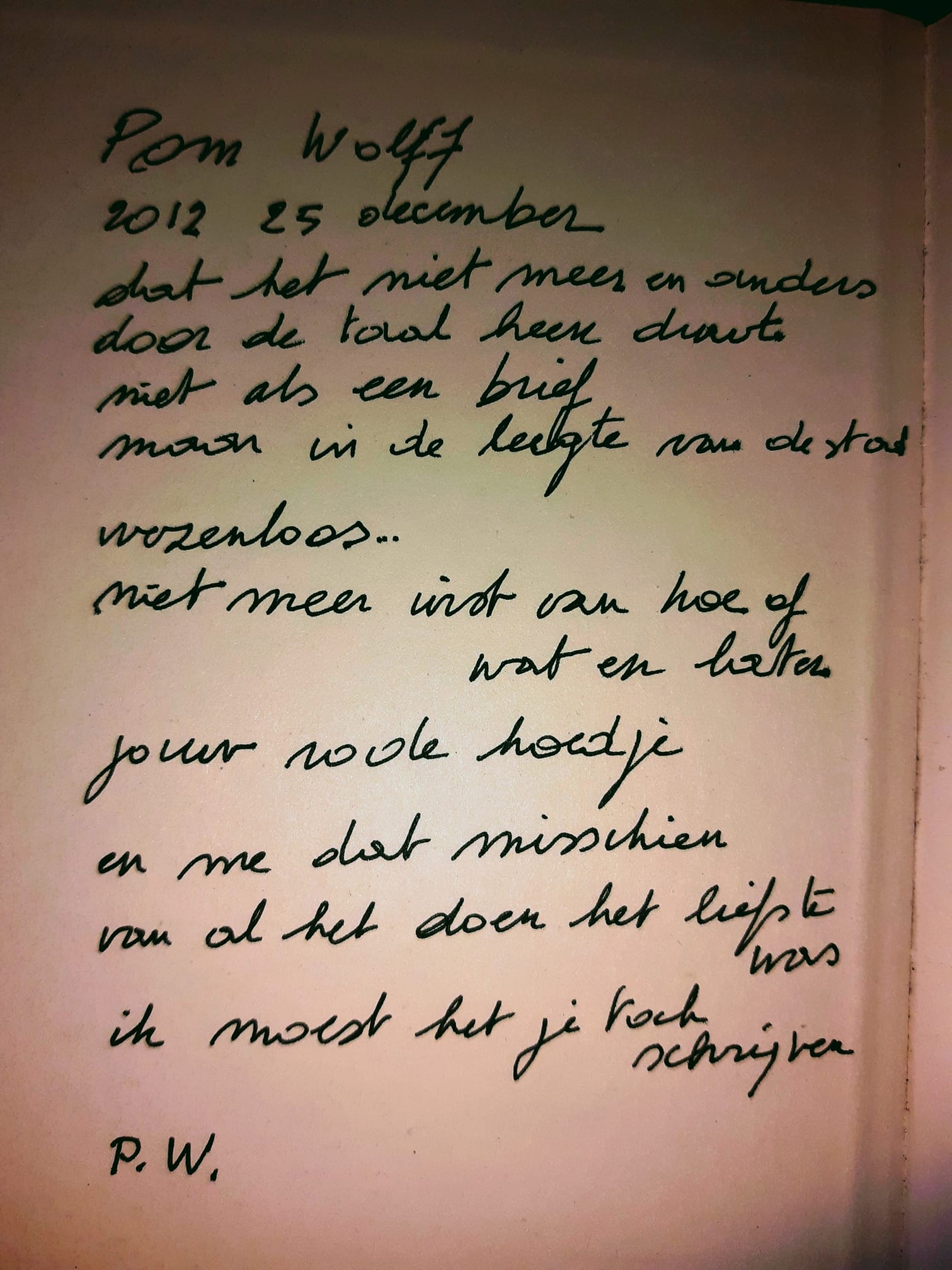 Ha Pom, Zondag jl. in Eijlders heb ik dit gedicht voorgelezen. Ik had het speciaal voor jou gemaakt, maar zag je niet.